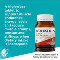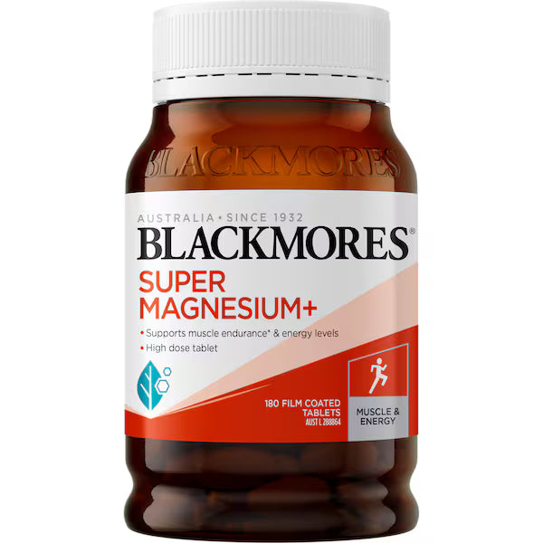 Blackmores Super Magnesium+ contains two easily absorbed forms of magnesium (amino acid chelate and citrate) which help support muscle endurance, and reduce muscle cramps, tension and stiffness when dietary intake is inadequate. This high-dose tablet also supports energy levels and body electrolyte balance.