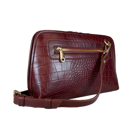 LeatherLuxe - Dark Red Leather Clutch Bag Shoulder Bag; Crossbody